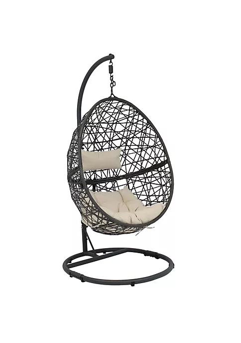- CLASSIC EGG DESIGN AND COMFORTABLE SIZE: 38 inches wide x 25 inches deep x 47.5 inches tall; weighs 20 pounds; Seat cushion: 28 inches wide x 27 inches deep x 4 inches thick; Stand dimensions: 38 inches wide x 42 inches deep x 76 inches tall; Weighs 33 pounds; Weight capacity: 265 pounds