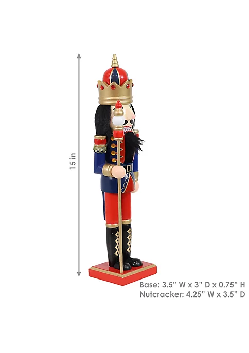 - TRADITIONAL CHRISTMAS TABLETOP DECOR: This indoor Christmas nutcracker figure is 4.25″ W x 3.5″ D x 15″ H and weighs 1.09 lbs. It stands on a base that is 3.5″ W x 3″ D x 0.75″ H. This holiday figurine is perfect for desks, tables, countertops, dressers, shelves and other places where Christmas accents will be welcome.