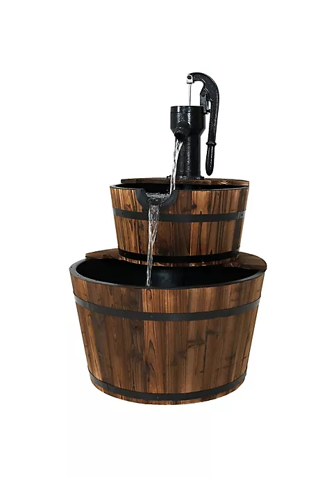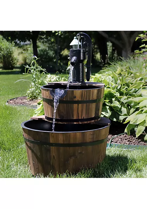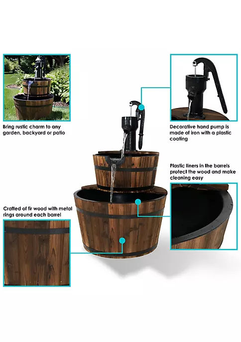 - PERFECT LANDSCAPE SIZE: Garden fountain measures 23.5 inches diameter x 34 inches tall; Lower tier: 23.5 inches diameter x 13.75 inches tall; Top tier: 10.75 inches diameter x 9.25 inches tall; Water pump: 11 inches tall; Weighs 30.8 pounds; Water capacity: 10 gallons; Stunning outdoor decor centerpiece will add beauty and grace to any yard