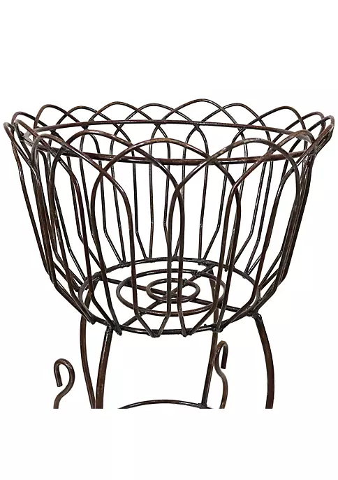 - ELEGANT STANDING PLANTER BASKET: This elegant planter basket measures 14″ W x 14″ D x 18.5″ H and weighs 2.4 lbs. The lower shelf has an 8″ diameter and has a height of 2.25″ off the ground. The planter basket has an 8″ diameter at the bottom and an 11.5″ diameter at the top and measures 7″ H.