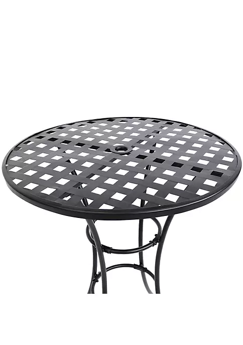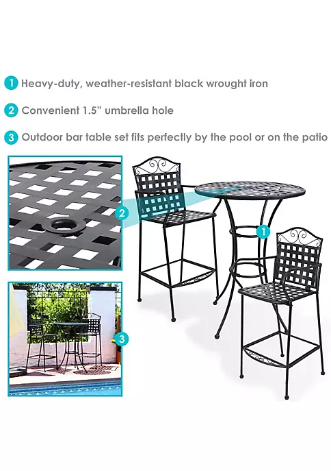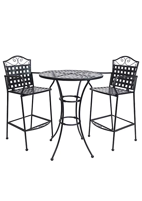 - TALL DESIGN: Table: 30″ diameter x 39.5″ H; weighs 19.6 lbs; weight capacity: 150 lbs; Chairs: 20.25″ W x 22″ D x 47.5″ H; Weighs 18.6 lbs; Weight capacity: 250 lbs; Enjoy outdoor dining with this stylish bar-height patio furniture set.