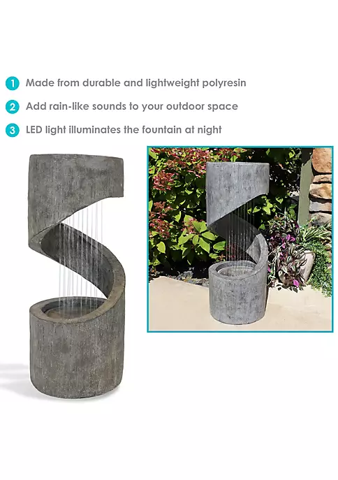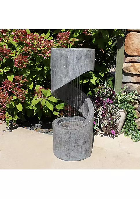 - IDEAL SIZE FOR YARD OR LANDSCAPED AREA: 12 inches diameter x 31.25 inches tall; Weighs 23.2 pounds; 0.5 inch hose diameter; 6-foot long power cord; AC adapter has input of 120V 80Hz; Adapter has output of 12V 1700mA 20.4W; 2-gallon water capacity
