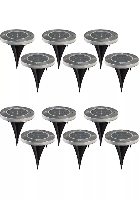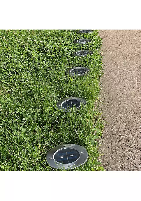- 2 SETS OF 6 LIGHTS: Each path light measures 0.75 inch tall x 4.5 inch diameter; Stake measures 4.75 inch long x 2.5 inch wide