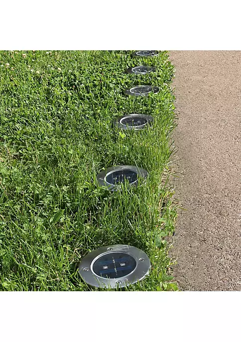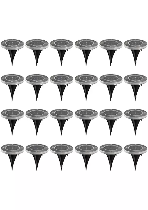 - 4 SETS OF 6 LIGHTS: Each path light measures 0.75 inch tall x 4.5 inch diameter; Stake measures 4.75 inch long x 2.5 inch wide