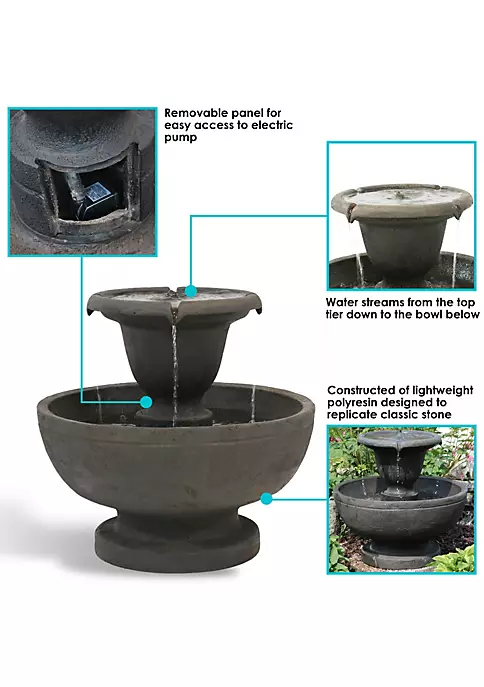 - ATTRACTIVE ADDITION TO YOUR LANDSCAPE: Make a statement to your yard, front porch, deck, and landscape with this stunning outdoor fountain; Measures 25 inches tall x 25 inch diameter and weighs 21 pounds, making it sturdy enough so it won’t tip over outside