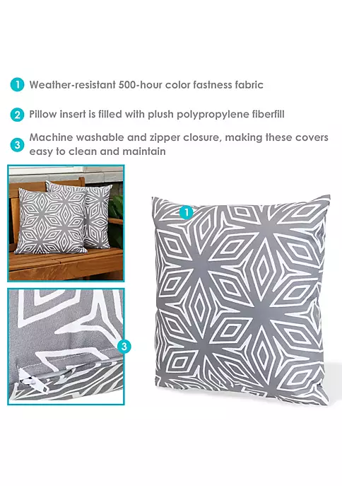 - ADD CHARMING ACCENTS TO INDOOR OR OUTDOOR SPACES: Accent cushion pillows are perfect for use on patio furniture or in your living room. Square throw pillows measure 17″ L x 17″ W x 3″ H and weigh 1.2 lbs each.