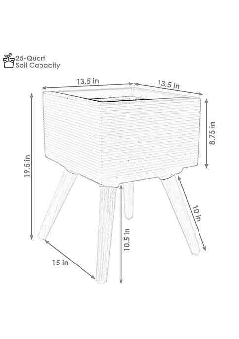- OVERALL DIMENSIONS: 13.5 inches square outer (11.75 inches inner) x 8.75 inches tall outer (8 inches inner); Overall height: 19.5 inches; 15 inches leg to leg; Ground clearance: 10.5 inches; 18.2 pounds; Soil capacity: 25 qts/6.3 gal