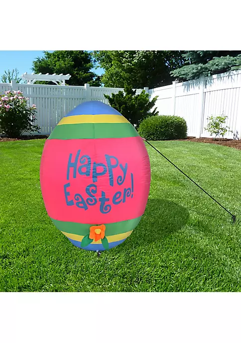 No Easter is complete without decorated Easter eggs! Go above and beyond with this inflatable Easter egg outdoor decoration. The blow-up decor features coated polyester material and includes a blower fan to keep it inflated as well as tether ropes and stakes to keep it in place.