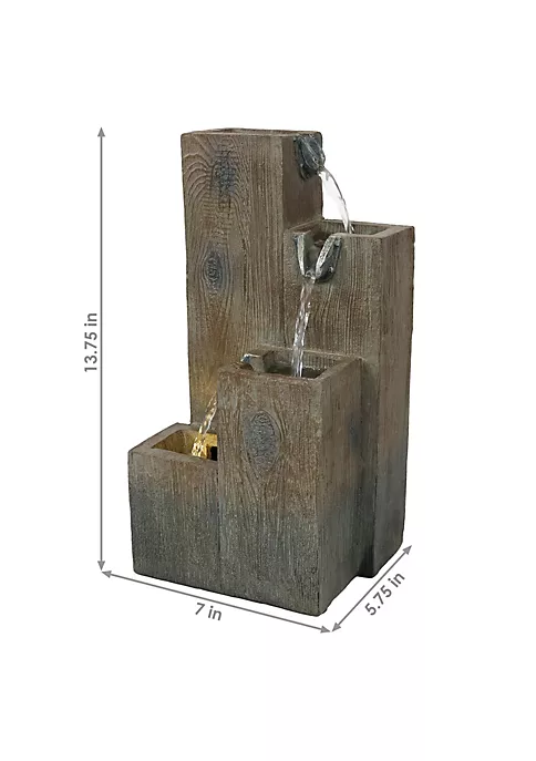 Make any personal space a little more peaceful and tranquil with this indoor tabletop fountain from Sunnydaze Decor. Durably constructed of easy-to-maintain polyresin, this fountain features the attractive look and feel of real wood, but is easy to clean. Promote relaxation in the home or office with this easy-to-assemble fountain that doesn’t require any complicated plumbing or installation with the included electric submersible pump. The pump recirculates the water to the top of the fountain, where it flows down each tier into the basin below. The bottom basin features a built-in LED light that illuminates the flowing water, making this a great piece of decor to enjoy in the evening when the sun goes down.