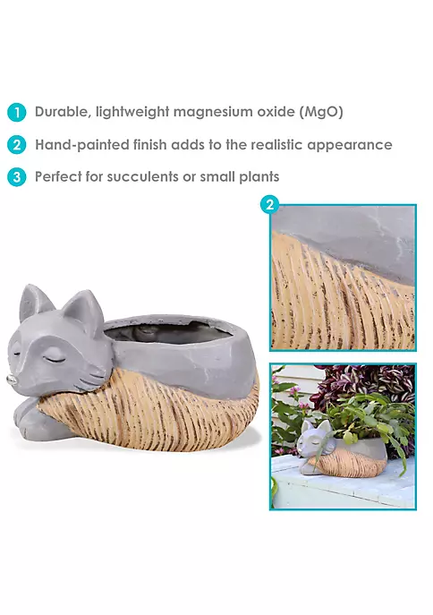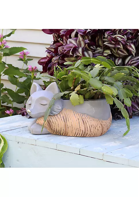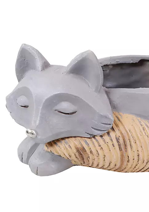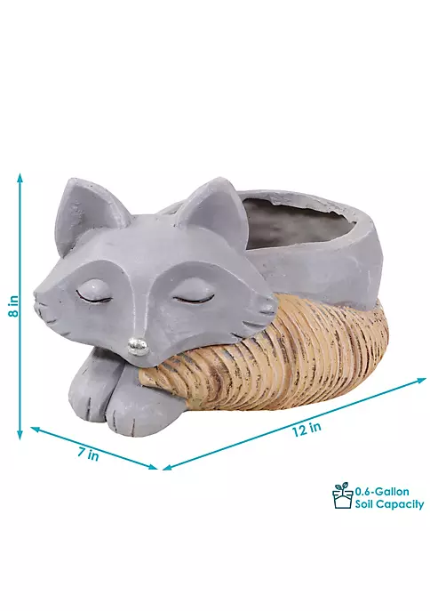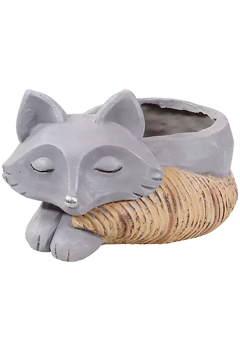 Create a calming space with a touch of wildlife character with Finley the fox planter statue. The little flower pot is sure to add a charming accent to any tabletop, desk, shelf or covered porch or patio. The small planter is the perfect size for favorite blooms, greenery or succulents live or fake. The little statue planter features a magnesium oxide construction completed with a hand-painted finish in neutral gray and faux wood colors for easily complementing a variety of decor schemes.