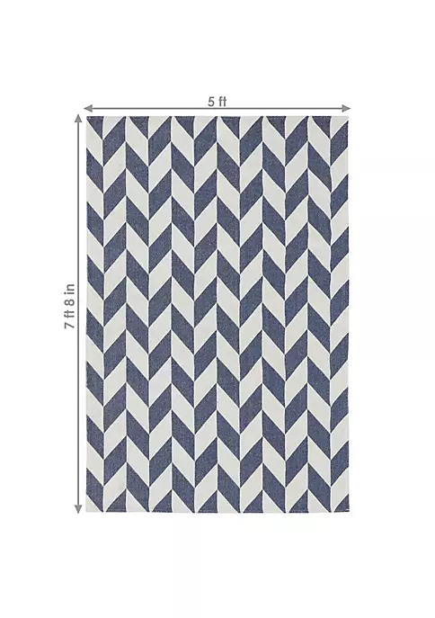 Create a modern accent in any indoor living space with the Geometric Affinity indoor area rug collection by Sunnydaze Decor. The indoor rectangular rug features a geometric pattern of steel blue contrasting against white for a 3D effect, making it an ideal addition to add warmth and style to the living room, foyer, bedroom, dining room or den. The rug is made from 100% recycled cotton yarn with a cotton jute backing. It is shed resistant and 95% stain resistant for ease of use and maintenance. This makes the rug safe for pets and everyday living.