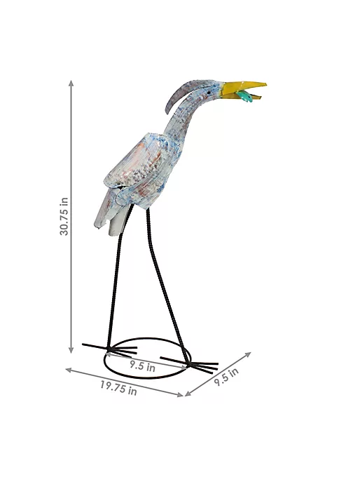 Give your indoor or outdoor space a coastal vibe with this Gilligan the charming metal crane statue. This handcrafted sculpture details a lovely white bird and yellow beak holding a fish. Gilligan’s body is brushed with blue and red accents to create an off-white construction. The fish is bright teal for a fun added pop of color. The steel construction with hand-painted finish creates a durable, elegant accent for the yard, patio, or garden. Due to the handmade nature of the metal sculpture, when used outdoors, this crane statue will develop a natural patina over time and will show some weathering. The steel construction ensures long-lasting strength for use year after year. Place on your patio, porch, deck, by the pool, in the garden, by the pond or other water feature, or anywhere else in need of a coastal friend to uplift your space effortlessly. All required materials for assembly are included in the box.
