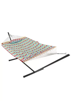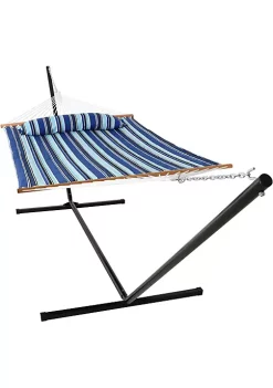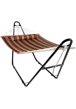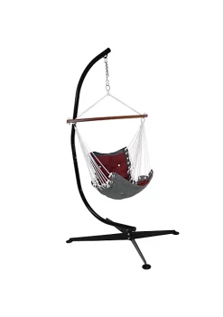 Add a unique seating element to any indoor or outdoor space. This hanging hammock chair can be used with our Sunnydaze C-stand. The swing features a durable cotton and polyester canvas construction that makes it perfect for universal placement. It also has durable rope attached to sanded hardwood poles to form and keep its shape.
