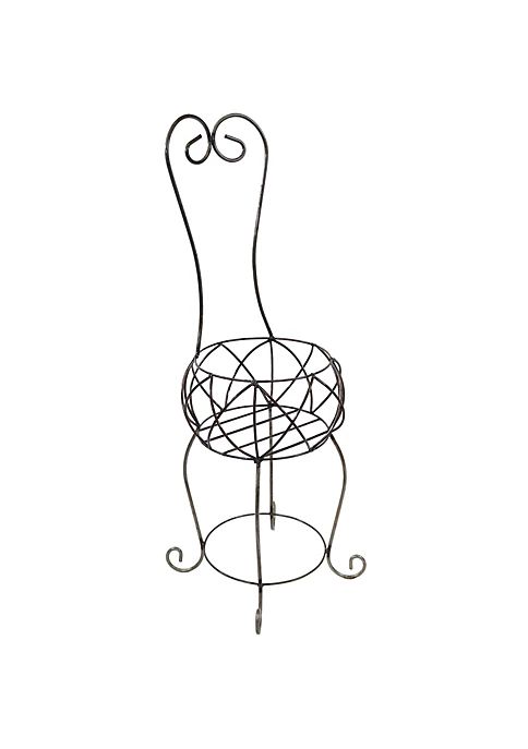Set your favorite potted flowers, greens, and other plants on this lovely, indoor or outdoor, large, metal scrolling chair planter stand. This rustic metal garden art is made from durable steel for extra strength and resistance to the outdoor elements and features a heart-shaped top on the back of the chair for added charm and lovability. This charming metal plant stand can be used indoors or outdoors. When used outdoors, it will develop a natural patina over time for a naturally weathered and rustic look. This metal chair features scrolled designs on the feet as well, with a basket featuring beautiful diamond details sure to accent your favorite blooming florals. Place on your patio for a gorgeous accent, sure to complement any outdoor aesthetic, place in your garden for a fun way to display your plants, or place indoors in your sunroom and enjoy your beautiful blossoms all the time.