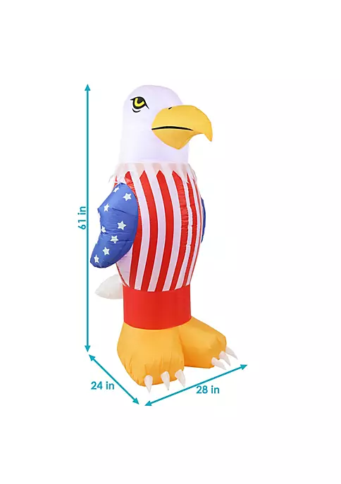 - 5-FOOT PATRIOTIC BLOW-UP: This inflatable decoration is the perfect accent for your 4th of July, Memorial Day, Veteran’s Day, or other American-themed celebration. The blow-up eagle measures 28“ W x 24“ D x 61“ H and weighs 2.2 lbs. The power cord is 79“ L.