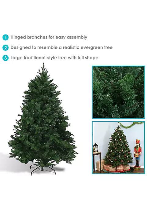 Bring your Christmas decor to life with the Majestic Pine Christmas Tree by Sunnydaze Decor. This full, beautiful artificial tree will bring instant seasonal cheer to any indoor living space. The hinged branches make the tree easy to set up. The tips are designed to form a realistic tree. Polyethylene and PVC are blended together to form a long-lasting, strong evergreen tree. Unlike natural trees, artificial trees don’t have to be watered and the branches can be adjusted/moved without breaking to fit in favorite decorations. When putting the tree together, insert the bottom portion into the stand and follow with the middle and top sections and finish by carefully fluffing the tree.