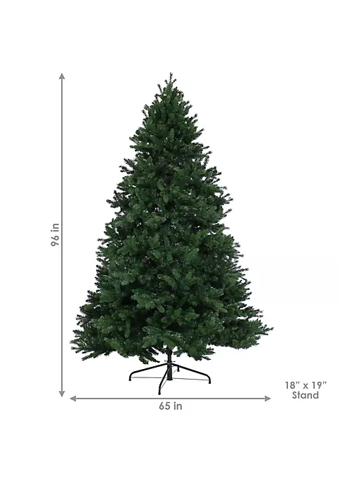 - FULL-BODIED LUSH DESIGN: 65 inches diameter x 8 feet tall; Stand: 19 x 18 inches; Weighs 46.4 pounds and makes a grand focal point