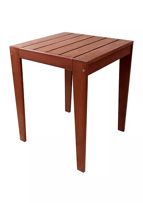 Create a cozy gathering space for your family and friends to enjoy great meals and even better conversation out on the porch, patio, garden, deck, or other outdoor area with this beautiful, square, meranti wooden outdoor table featuring a teak oil finish. This attractive outdoor bistro table is constructed of meranti wood with a mahogany teak oil finish for strength and durability against the outdoor elements. The natural tones will also effortlessly complement any existing style or decor. Whether you are striving for a boho chic or farmhouse style, the clean lines and classic appearance of this versatile piece of furniture will update any outdoor living space. Plus, everything needed to assemble this table is in the box, including the hardware and tools so you can enjoy this beautiful table almost right out of the box. Gather your loved ones and enjoy beautiful evenings out on the patio, deck, or porch, and have a space to chat, gather snacks and drinks, or to relax.