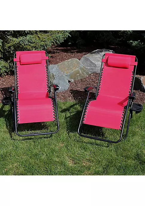 The Sunnydaze Zero Gravity Chair with Pillow and Cup Holder offers the ultimate experience in portable patio furniture. Designed with comfort in mind, these chairs are made from all-weather fade-resistant synthetic fabric sling fabric. The bungee cords that connect the synthetic fabric seat to the sturdy metal frame help to enhance the comfort and function of the chair. The headrest pillow has an elastic band that makes it easy to place the pillow where it works best. The smooth recline function easily locks into any desired position by flipping the knobs on both sides away from the user to lock the reclined position in place.