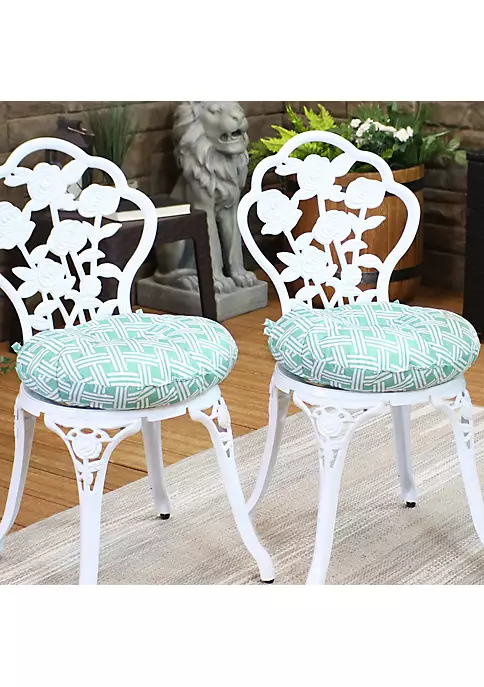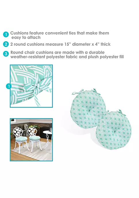 Enjoy comfortable seating with these stylish bistro chair cushions. These round chair cushions feature vibrant and colorful patterns and are made with a durable weather-resistant 300 D polyester fabric and a plush polyester fill. These round seat cushions for indoor or outdoor chairs feature convenient ties that make them easy to attach. They are perfect for entertaining, dining or simply sitting and chatting with friends.