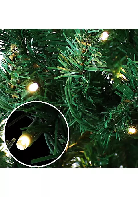 Bring your family together this holiday season to enjoy this lifelike faux evergreen tree. It is made from PVC and steel metal to resemble a kingswood fir tree and is sure to bring natural beauty to your home this holiday season. Warm white LED lights twinkle on the branches of the tree and complement any ornaments or tree decorations. This tree is quick and easy to assemble. Simply unfold the steel stand, secure the three tree pieces together by stacking them on top of each other, connect the light cords together, and fluff the branches. No vacuuming or watering required. After the holidays are over, simply unplug the lights, take the tree apart, fold the hinged branches toward the center, and place it back in the box for next year.