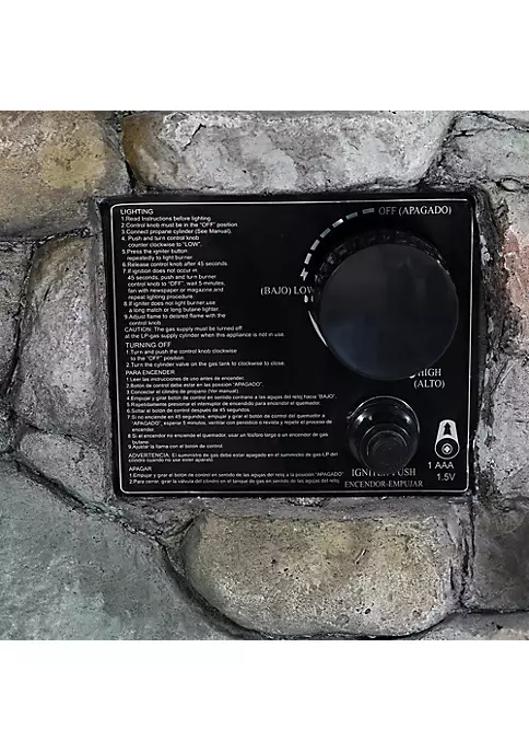 Add warmth and style to the patio, backyard or outdoor space with this liquid propane gas fire pit. The unit features a durable and attractive fiberglass-reinforced cast stone construction, as well as an electronic control panel and ignition switch. The 20 lb. LP tank will be safely out of sight behind the matching panel door so one can enjoy the fire pit without any eyesores. Each unit comes with a 10″ diameter stainless steel burner, a battery for the ignition, a weather-resistant polyester cover, 6 lbs. of lava rock, and a 16″ gas hose with regulator. To use the fire pit once the propane tank is hooked up, push the flame control knob in a counter-clockwise rotation to low, and then push the igniter button until flame lights.