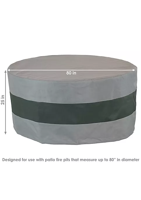 Protect the fire pit from water, wind, snow and rain with the Sunnydaze Round 2-Tone Outdoor Fire Pit Cover. This waterproof fire pit accessory is made from durable 300D polyester with a PVC backing to protect the fire pit from most weather conditions. This protective waterproof firepit cover comes in a stylish gray color with a green center stripe to complement any outdoor decor. Plus, it is UV-resistant to help prevent the color from fading. This portable fire pit cover also features a drawstring and toggle design for a secure fit.
