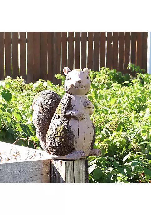 Silas the squirrel statue is perfect for placement in the yard, garden, on the patio or in any indoor living space. The squirrel statue stands ready to forage for his favorite treats. The little figurine features a hand-painted finish for adding extra charm to his surrounding as well as a durable magnesium oxide (MgO) construction.