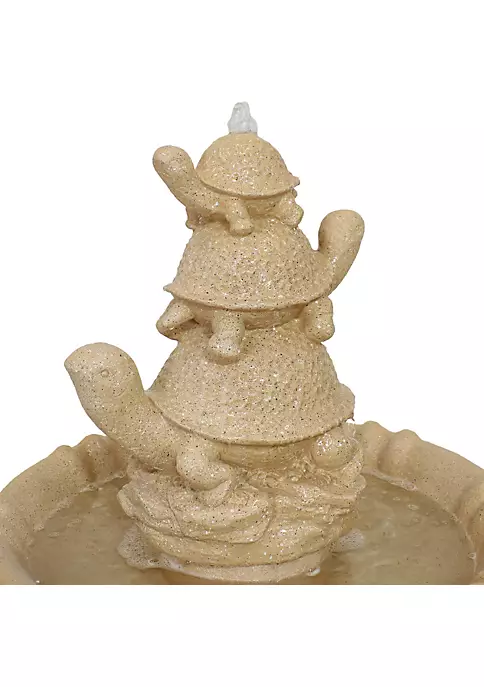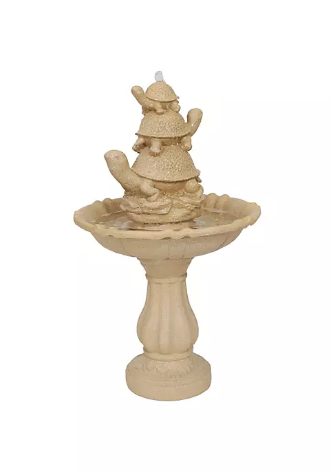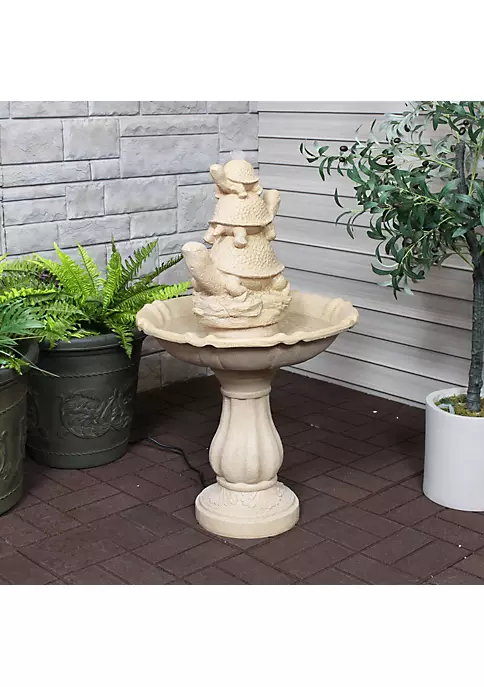- Tiered outdoor fountain|Polyresin|Includes 1 tiered outdoor fountain and 1 electric submersible pump|Fountain with fun turtles adds whimsical touch to outdoor landscape|No plumbing requires with the included electric submersible pump|22.75″ diameter x 37.5″ H; 15 lbs