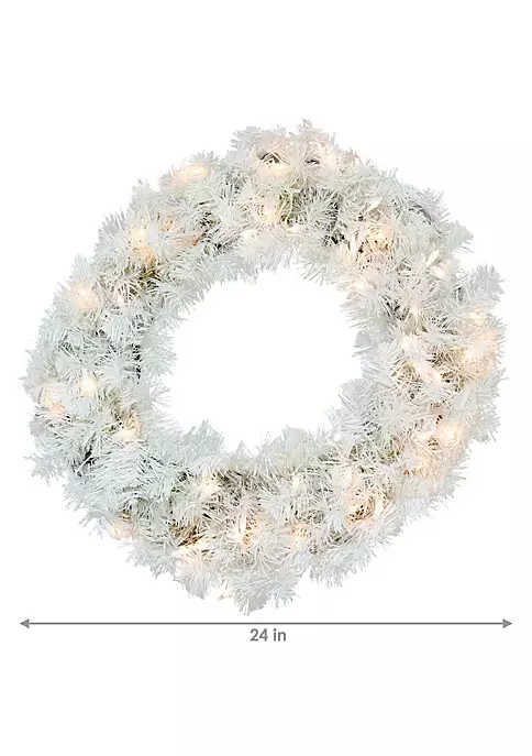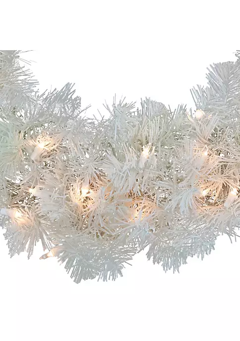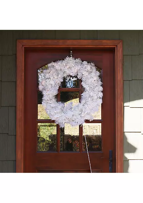 Celebrate the holidays and the winter season with this festive Christmas wreath. Made of durable PVC, This elegant wreath features a snow white color and warm lights to give any space a touch of wintry style. It features features a full, pine needle appearance and can be used in a variety places. Hang it on your front door, above the mantel or on any wall as a unique holiday centerpiece.