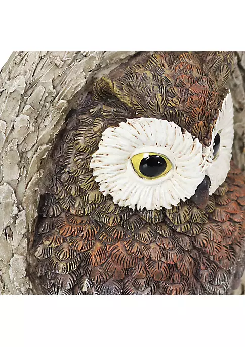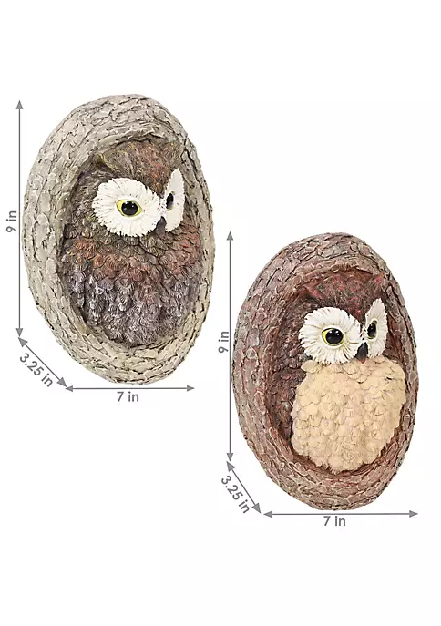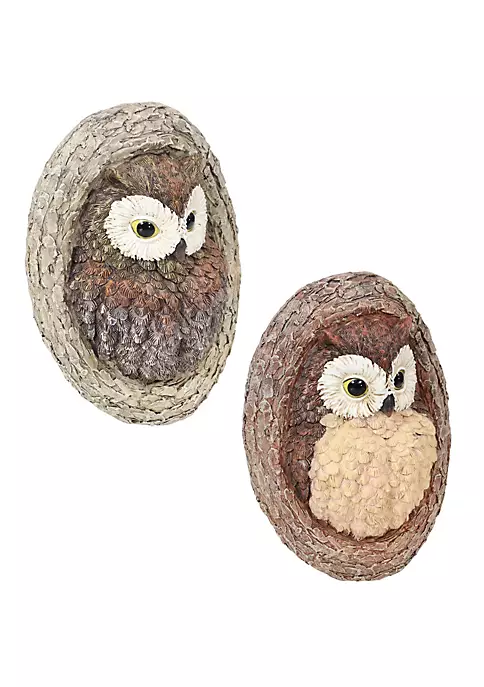 Give your outdoor living space and trees added charm with Winifred and Wesley the wise old owls hanging tree decorations. Constructed of polyresin, these pieces of yard art have been crafted to replicate the look of two owls curiously peeking out of a tree hollow. The muted earth-tone colors will beautifully blend in with a variety of trees and outdoor spaces. These owls are simple to set up as well. Just install a screw for each owl into the mounting surface you want to hang them up on (please note, this product does not include a screw which must be purchased separately).