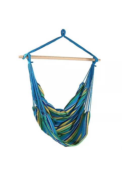 These vibrant, large hammock chair swings will add comfort and whimsy to any outdoor space, patio, deck or yard. The chair features a very roomy seat made of soft cotton material, durable polyester ropes and a sanded spreader bar for hanging.