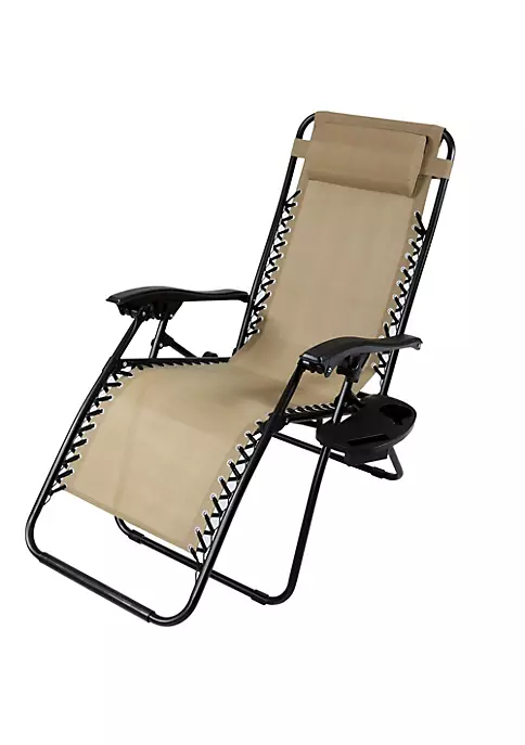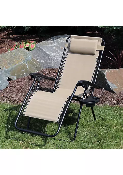This outdoor zero gravity lounger is perfect for any patio, poolside, beach or outdoor space. The Sunnydaze Zero Gravity Chair with Pillow and Cup Holder offers the ultimate experience in portable patio furniture. Designed with comfort in mind, these chairs are made from all-weather, fade-resistant, synthetic sling fabric. The bungee cords that connect the synthetic fabric seat to the sturdy steel frame help to enhance the comfort and function of the chair. The headrest pillow has an elastic band for easy placement. The smooth recline function easily locks into any desired position by flipping the knobs on both sides away from the user to lock it in-place.