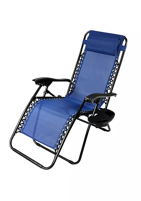 This outdoor zero gravity lounger is perfect for any patio, poolside, beach or outdoor space. The Sunnydaze Zero Gravity Chair with Pillow and Cup Holder offers the ultimate experience in portable patio furniture. Designed with comfort in mind, these chairs are made from all-weather, fade-resistant, synthetic sling fabric. The bungee cords that connect the synthetic fabric seat to the sturdy steel frame help to enhance the comfort and function of the chair. The headrest pillow has an elastic band for easy placement. The smooth recline function easily locks into any desired position by flipping the knobs on both sides away from the user to lock it in-place.