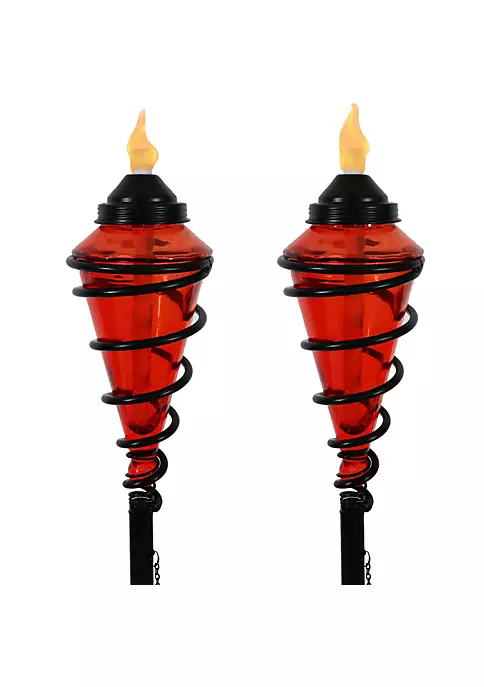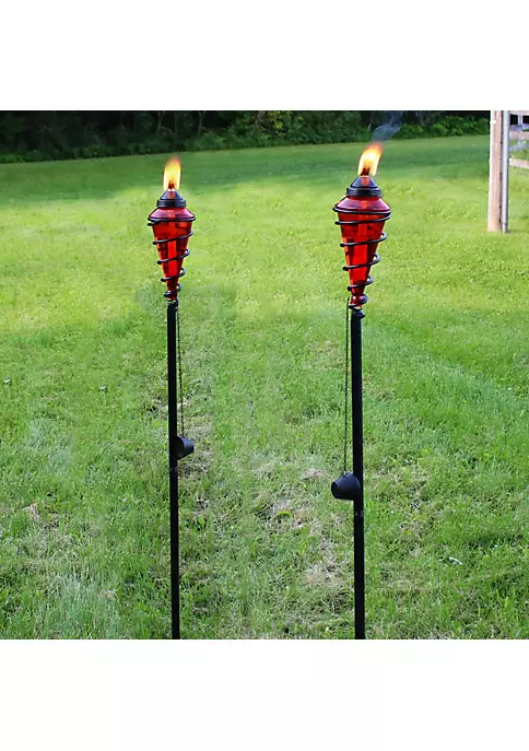 - ADD A GLOW TO YOUR BACKYARD: Outside torches measure 4 inches diameter x 66 inches tall (when assembled with all 4 pole sections); Pole is 0.75 inches thick; Each torch weighs 2.4 pounds; Glass torch vessel with metal casing is 11 inches tall; Each fuel canister holds approximately 10 oz of fuel; Perfect to add to your garden, lawn or patio