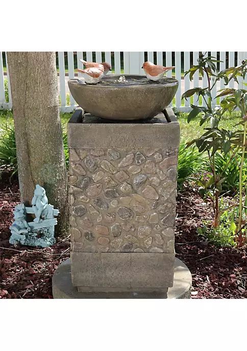 - ATTRACTIVE ADDITION TO YOUR SPACE: Attract wild birds in your garden, porch, deck, lawn, and exterior space with this gorgeous outdoor fountain; Measures 12 inches wide x 12 inches deep x 25 inches tall; Weighs 20 pounds so it won’t tip over and light enough to move around; 3 gallon water capacity