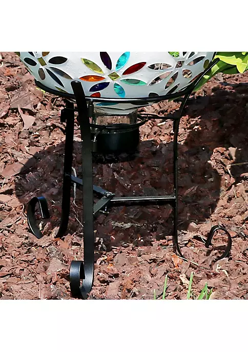 - PERFECT SIZE: 9.5 inches wide x 8 inches deep x 9.25 inches tall; Weighs 0.6 pounds; When placed in stand, gazing ball sits approximately 7.5 inches above the ground (please note, gazing ball is not included with the stand); Ring that balls sits on is 7 inches diameter; Smaller decorative ring is 3 inches diameter