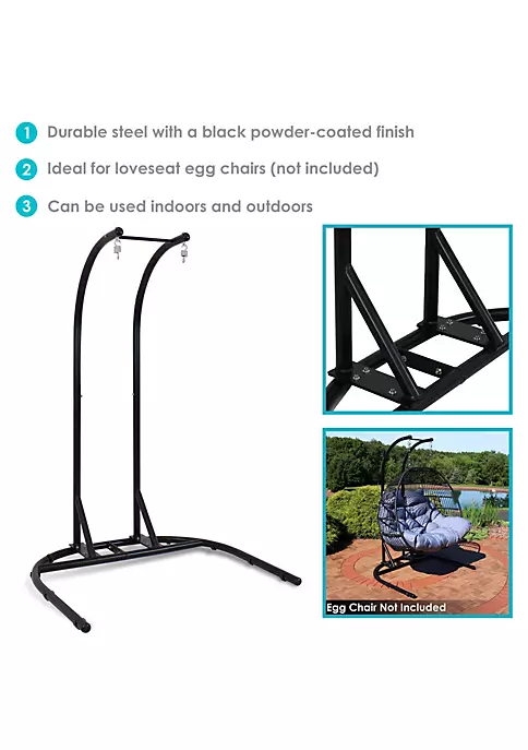 - STRONG AND DURABLE CHAIR STAND: 53 inches wide x 45.5 inches deep x 76.5 inches tall; Weighs 70 pounds; Weight capacity: 550 pounds; Hang a loveseat egg chair from this stand to create a comfortable seat for two.